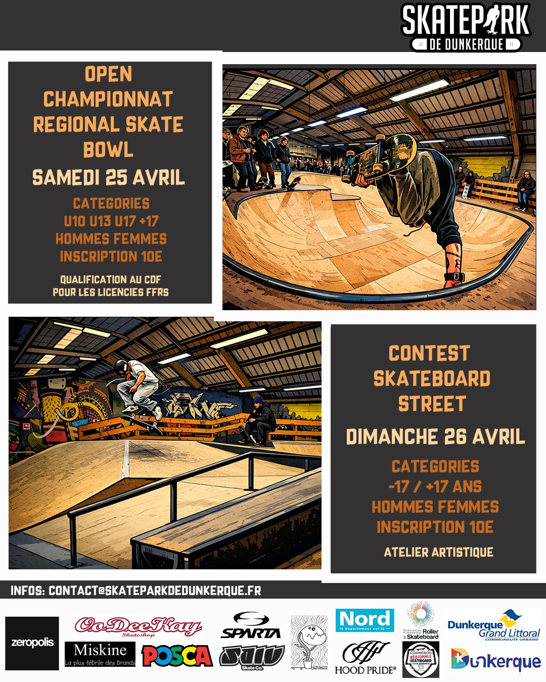 Merci à nos partenaires @zeropolis_skateshop @odkshop @miskine.officiel @poscagallery @sparta.s.b @salvskateco @monsieurharicotgribouille @hood_pride @commission_skateboard_france @sports_ville_de_dunkerque
